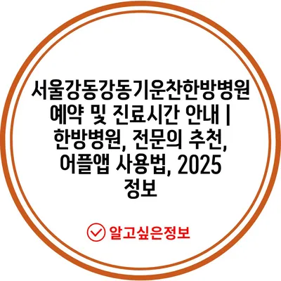 서울강동강동기운찬한방병원 예약 및 진료시간 공지 | 한방병원, 전연락 추천, 어플앱 사용법, 2025 정보 에 대해 자주 묻는 질문 TOP 5