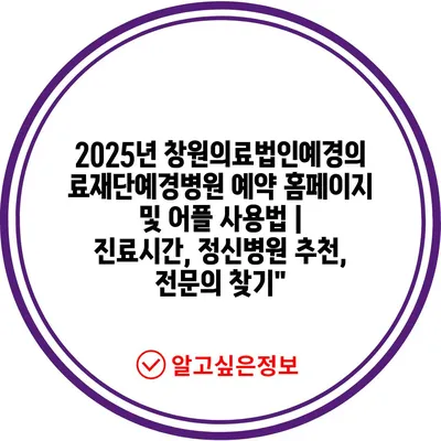 2025년 창원의료법인예경의료재단예경병원 예약 홈페이지 및 어플 사용법 | 진료시간, 정신병원 추천, 전연락 찾기에 대해 자주 묻는 질문 TOP 5