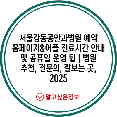 서울강동공안과병원 예약 홈페이지&어플 진료시간 공지 및 공휴일 운영 팁 | 병원 추천, 전연락, 잘보는 곳, 2025 에 대해 자주 묻는 질문 TOP 5