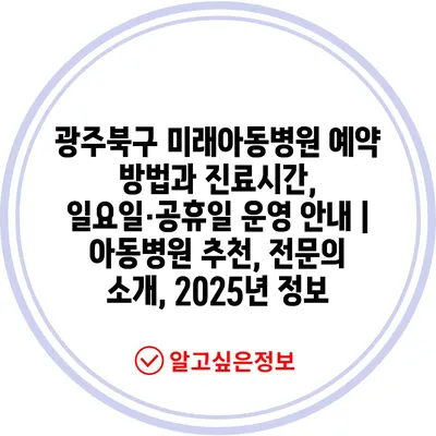 광주북구 미래아동병원 예약 방법과 진료시간, 일요일·공휴일 운영 공지 | 아동병원 추천, 전연락 소개, 2025년 정보 에 대해 자주 묻는 질문 TOP 5
