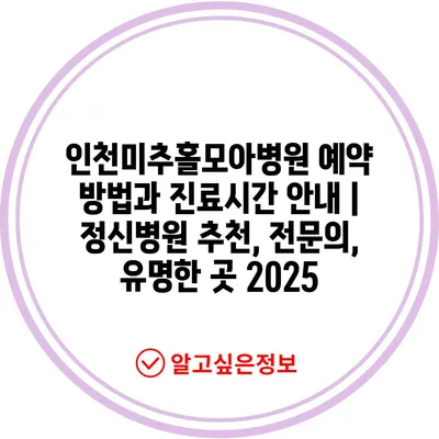 인천미추홀모아병원 예약 방법과 진료시간 공지 | 정신병원 추천, 전연락, 유명한 곳 2025 에 대해 자주 묻는 질문 TOP 5