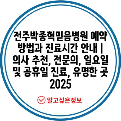 전주박종혁믿음병원 예약 방법과 진료시간 공지 | 의사 추천, 전연락, 일요일 및 공휴일 진료, 유명한 곳 2025