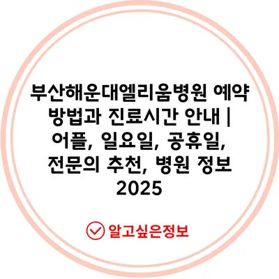 ✅ 부산해운대엘리움병원의 예약 방법과 진료시간을 자세히 알아보세요.