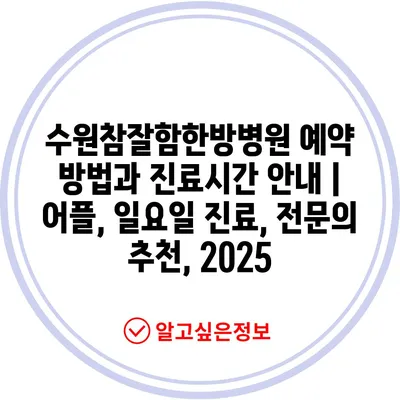 수원참잘함한방병원 예약 방법과 진료시간 공지 | 어플, 일요일 진료, 전연락 추천, 2025 에 대해 자주 묻는 질문 TOP 5