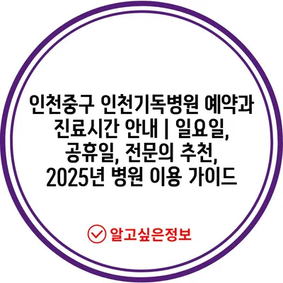 인천중구 인천기독병원 예약과 진료시간 공지 | 일요일, 공휴일, 전연락 추천, 2025년 병원 이용 설명서 에 대해 자주 묻는 질문 TOP 5