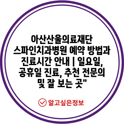 ✅ 아산산울의료재단 스파인치과병원의 진료시간과 예약 방법을 알아보세요.