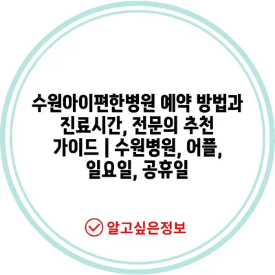 ✅ 수원아이편한병원 예약 방법을 쉽게 알아보세요.