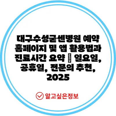 대구수성굳센병원 예약 홈페이지 및 앱 활용법과 진료시간 요약 | 일요일, 공휴일, 전연락 추천, 2025에 대한 내용을 소개합니다.