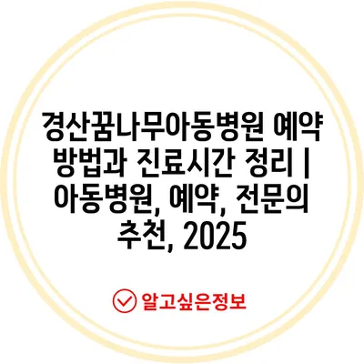 경산꿈나무아동병원 예약 방법과 진료시간 정리 | 아동병원, 예약, 전연락 추천, 2025 에 대해 자주 묻는 질문 TOP 5