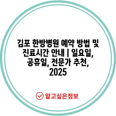 김포 한방병원 예약 방법 및 진료시간 공지 | 일요일, 공휴일, 전문가 추천, 2025에 대해 알아보겠습니다.