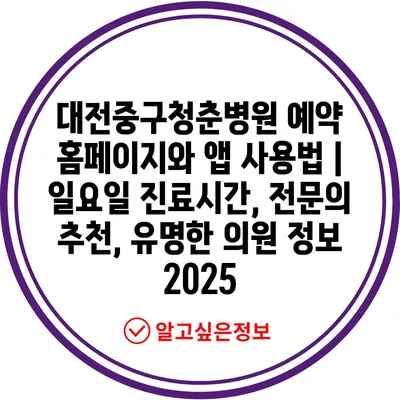 대전중구청춘병원 예약 홈페이지와 앱 사용법 | 일요일 진료시간, 전연락 추천, 유명한 의원 정보 2025 에 대해 자주 묻는 질문 TOP 5