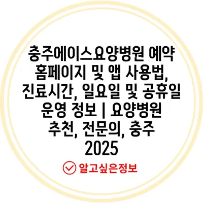 충주에이스요양병원 예약 홈페이지 및 앱 사용법, 진료시간, 일요일 및 공휴일 운영 정보 | 요양병원 추천, 전연락, 충주 2025 에 대해 자주 묻는 질문 TOP 5