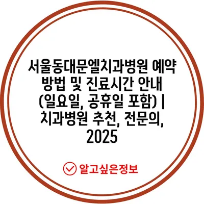 ✅ 서울동대문엘치과병원 예약 방법과 진료 시간을 자세히 알아보세요.