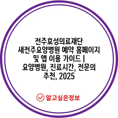 전주효성의료재단 새전주요양병원 예약 홈페이지 및 앱 이용 설명서 | 요양병원, 진료시간, 전연락 추천, 2025 에 대해 자주 묻는 질문 TOP 5