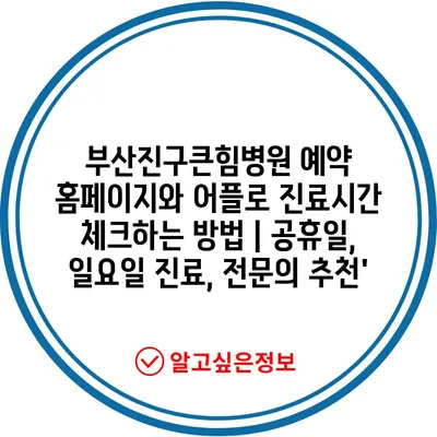 ✅ 부산진구큰힘병원의 진료시간 및 예약 방법을 쉽게 확인하세요.