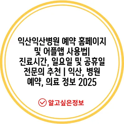 익산익산병원 예약 홈페이지 및 어플앱 사용법| 진료시간, 일요일 및 공휴일 전연락 추천 | 익산, 병원 예약, 의료 정보 2025 에 대해 자주 묻는 질문 TOP 5