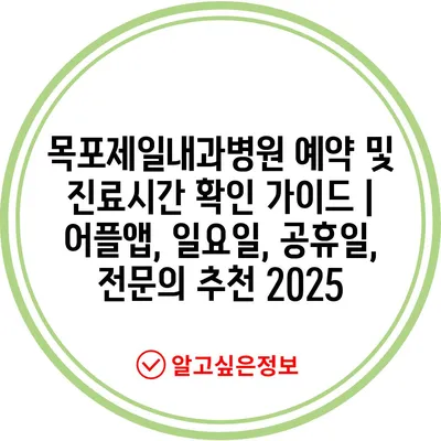 목포제일내과병원 예약 및 진료시간 확인 설명서 | 어플앱, 일요일, 공휴일, 전연락 추천 2025에 대해 자주 묻는 질문 TOP 5