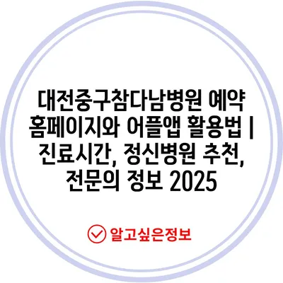 대전중구참다남병원 예약 홈페이지와 어플앱 활용법 | 진료시간, 정신병원 추천, 전연락 정보 2025에 대해 알아보겠습니다.