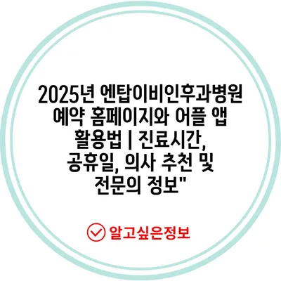 ✅ 2025년 엔탑이비인후과병원 예약 방법 및 정보 알아보기