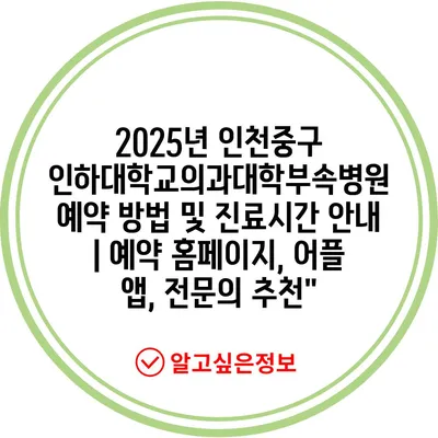 2025년 인천중구 인하대학교의과대학부속병원 예약 방법 및 진료시간 공지 | 예약 홈페이지, 어플 앱, 전연락 추천