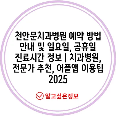 천안문치과병원 예약 방법 공지 및 일요일, 공휴일 진료시간 정보 | 치과병원, 전문가 추천, 어플앱 이용팁 2025에 대해 알아보겠습니다.