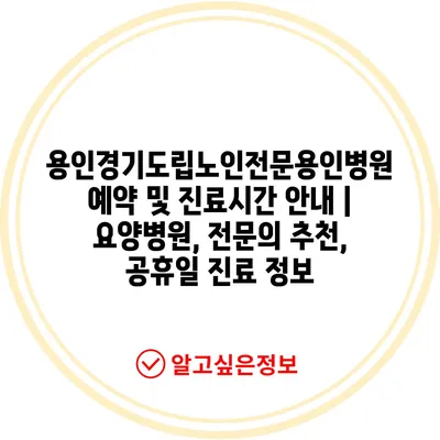 용인경기도립노인전문용인병원 예약 및 진료시간 공지 | 요양병원, 전연락 추천, 공휴일 진료 정보에 대해 자주 묻는 질문 TOP 5