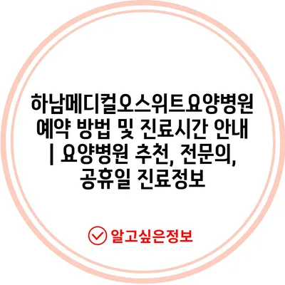 ✅ 하남메디컬오스위트요양병원의 예약 방법과 진료 시간을 쉽게 알아보세요.