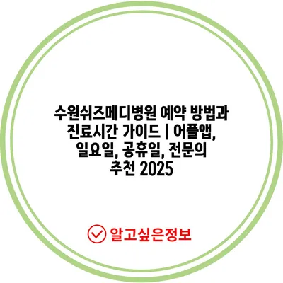 ✅ 수원쉬즈메디병원의 예약 팁과 진료시간을 알아보세요.