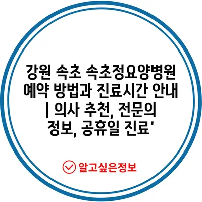 ✅ 속초정요양병원의 예약 방법과 진료 시간을 자세히 알아보세요.