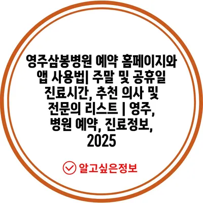 영주삼봉병원 예약 홈페이지와 앱 사용법| 주말 및 공휴일 진료시간, 추천 의사 및 전연락 리스트 | 영주, 병원 예약, 진료정보, 2025 에 대해 자주 묻는 질문 TOP 5