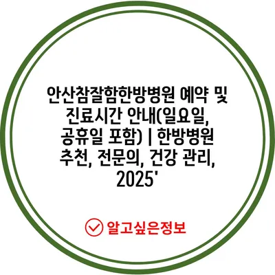 안산참잘함한방병원 예약 및 진료시간 공지(일요일, 공휴일 포함) | 한방병원 추천, 전연락, 건강 관리, 2025′ 에 대해 자주 묻는 질문 TOP 5