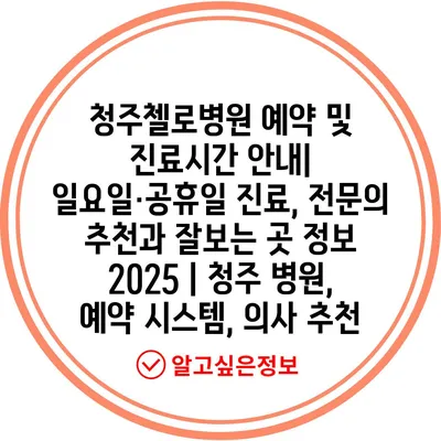 청주첼로병원 예약 및 진료시간 공지| 일요일·공휴일 진료, 전연락 추천과 잘보는 곳 정보 2025 | 청주 병원, 예약 시스템, 의사 추천 에 대해 자주 묻는 질문 TOP 5