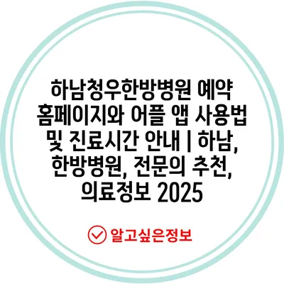 ✅ 하남청우한방병원 예약 방법을 자세히 알아보세요.