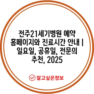 전주21세기병원 예약 홈페이지와 진료시간 공지 | 일요일, 공휴일, 전연락 추천, 2025에 대해 알아보겠습니다.