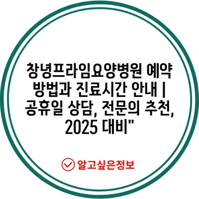 ✅ 창녕프라임요양병원 예약 절차를 간편하게 알아보세요.