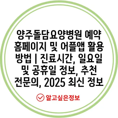양주돌담요양병원 예약 홈페이지 및 어플앱 활용 방법 | 진료시간, 일요일 및 공휴일 정보, 추천 전문의, 2025 최신 정보