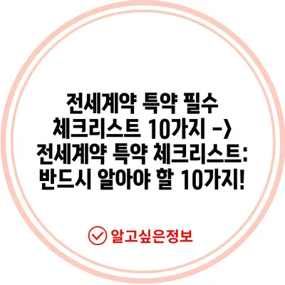전세계약 특약 필수 체크리스트 10가지 -> 전세계약 특약 체크리스트: 반드시 알아야 할 10가지!