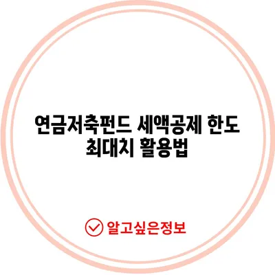 💡 연금저축펀드의 세액공제 한도를 최대한 활용하는 팁을 알아보세요. 💡