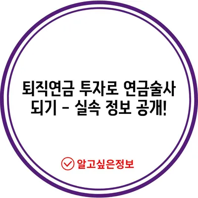 퇴직연금 투자로 연금술사 되기 – 실속 정보 공개!