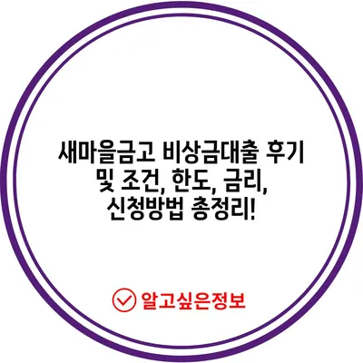 💡 새마을금고 비상금대출의 조건과 한도를 지금 바로 알아보세요! 💡