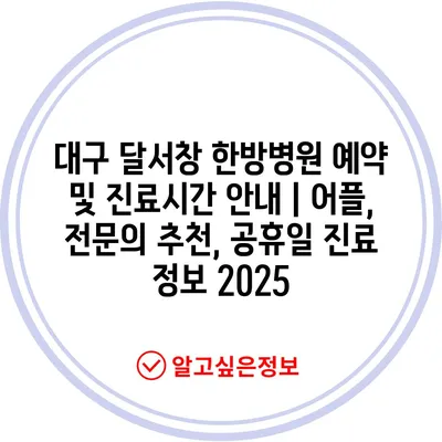 대구 달서창 한방병원 예약 및 진료시간 안내 | 어플, 전문의 추천, 공휴일 진료 정보 2025
