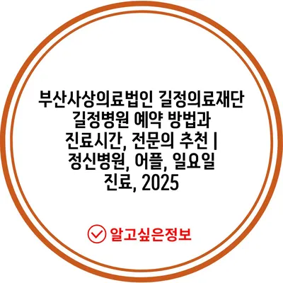 부산사상의료법인 길정의료재단 길정병원 예약 방법과 진료시간, 전문의 추천 | 정신병원, 어플, 일요일 진료, 2025